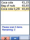 Cuando el escáner de cliente se utiliza para la inspección parcial de los artículos del consumidor (en contraste con el storeMate Mobile Assistant), la pantalla indica el número de artículos propuesto a escanear y el número de artículos restantes. |